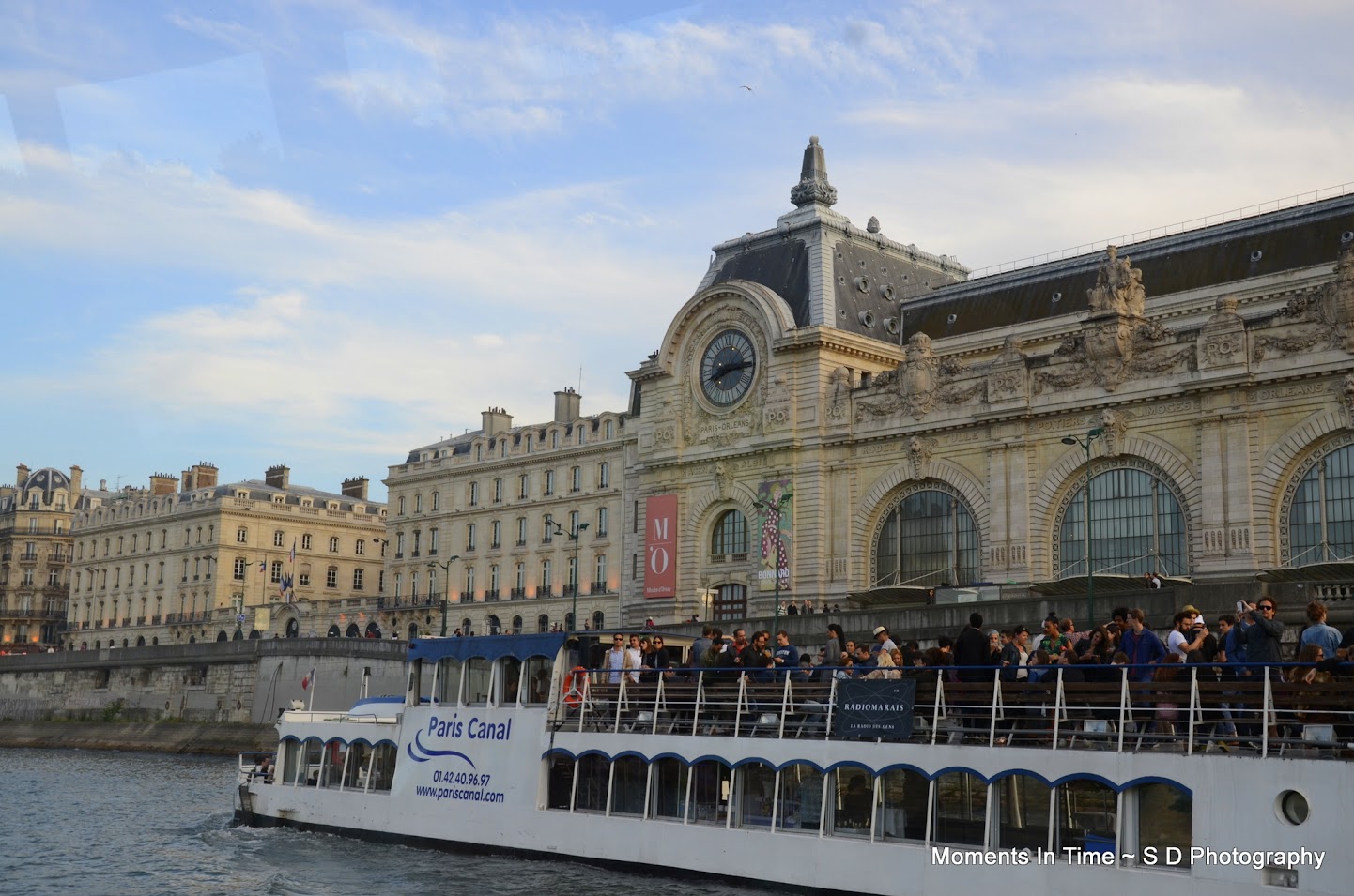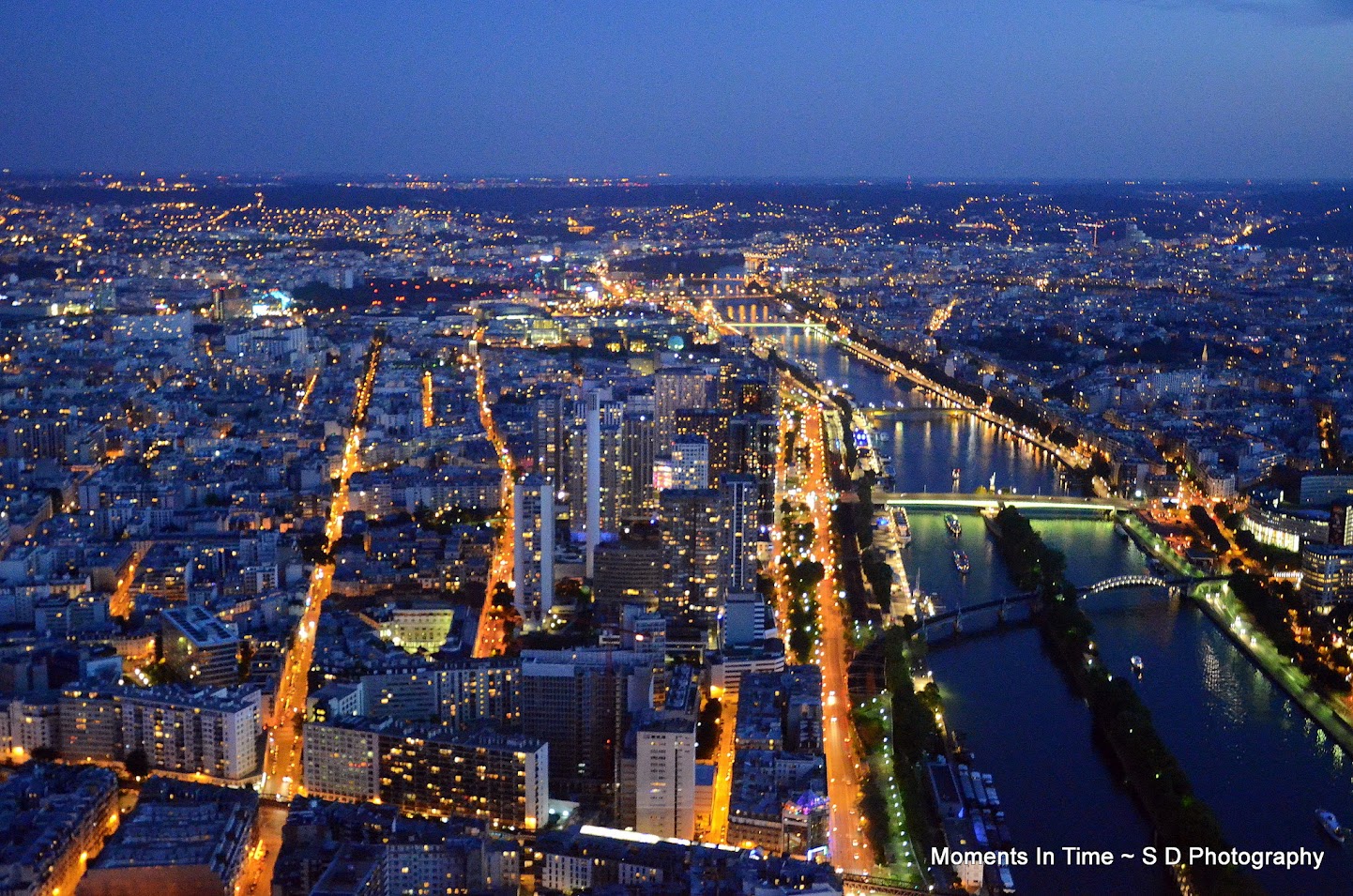 There are boats all along the river at this time of night doing these evening river cruises.