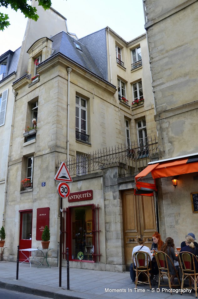But before we set out on this tour, we stopped at a little cafe with our guide, Justine, for some café and some thé for Carol. During this time Justine showed us some maps of Paris, told us about the metro system, answered any questions we might have and even gave us a little guide book she had made up for us for when we returned after our river cruise. She wanted us to feel like we had a friend in her while we were there, someone we could call upon should we need her, and if she wasn't there, she wanted to be sure we had the information necessary to be comfortable in this city she loved so much! We spent about 45 minutes just chatting and getting to know one another. It was a nice way to relax and take it all in! When we were ready to set out on our day, we decided to take the bus rather than the metro so we could see the sites along the way! Off we went! The 91 bus towards Le Marais!